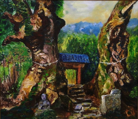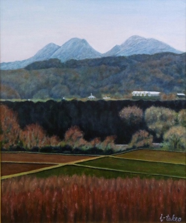 相川さんの作品は、群馬・榛名山を遠景に、吾妻川の渓谷を中ほどに、田畑を手前に配して描いた「故郷の印象」、